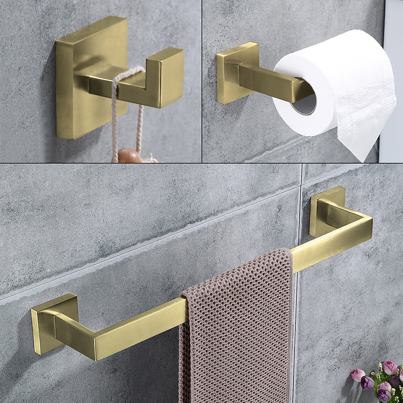 Bathroom Hardware Set 4 Pieces, SUS304 Stainless Steel Remodeled Wall Mounted Bathroom Accessories, Include 2 Robe Hook,1 Towel Bar,1 Toilet Paper Holder 5