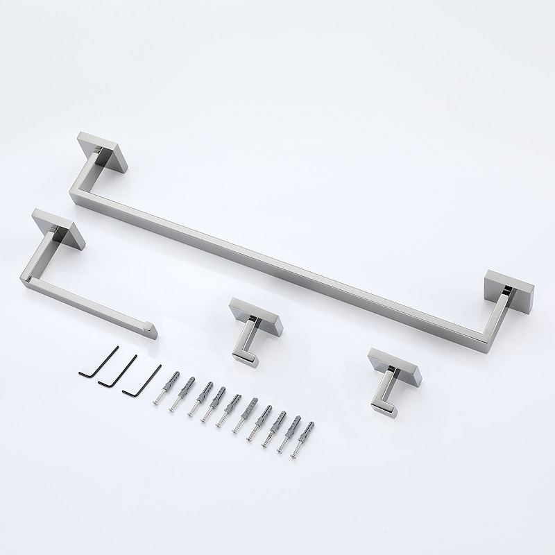 Bathroom Hardware Set 4 Pieces, SUS304 Stainless Steel Remodeled Wall Mounted Bathroom Accessories, Include 2 Robe Hook,1 Towel Bar,1 Toilet Paper Holder 10