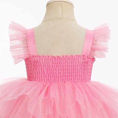 IDOPIP Toddler Girls Birthday Dresses Asymmetrical Ruffle Tulle Tutu Princess Birthday Party Dress Pageant Smocked Bow Gown 4