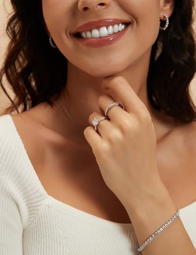 Ring size: 3Material: CopperMetal type: CopperGem type: Cubic ZirconiaSpecification: AAAAA cubic zirconia simulated diamond wedding ring sets for women. White gold plated, look real and sparkles like natural diamond ringsDesign: 1.5 carats CZ main stone, 7.5x7.5mm. Brilliant round cut. Solitaire diamonique engagement rings with a stackable wedding bandPerfect Choice: The distinctive wedding sets come with a box. It's a nice jewelry present choice for her on travel, promise, birthday, wedding, engagement, and anniversaryDelicate Craft: Hand set stones are firmly stabilized and resistant to falling out. We use advanced environmentally friendly electroplating technology to ensure durability and comfort for regular wearWarm Tips: Jewelry is easy to oxidize, please remove it prior to hand washing, swimming, showering and keep it separately in the box we send to you Perfect for everyday use. supreme materials and excellent craftsmanship ensure long-lasting durability.
