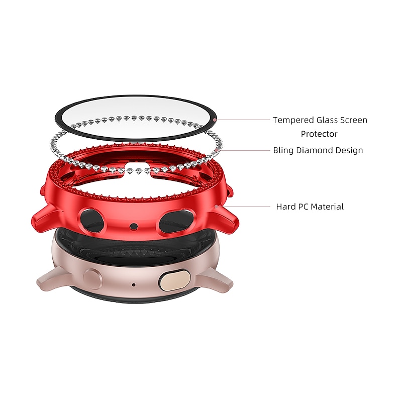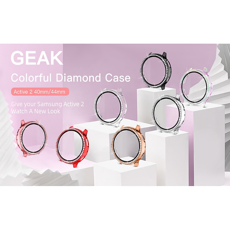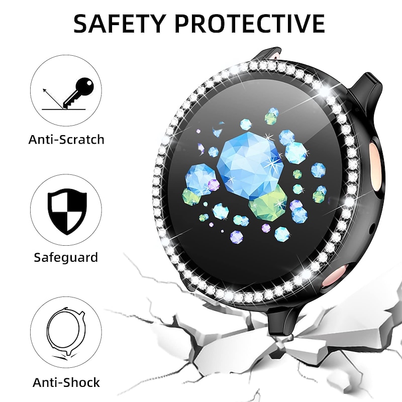 Highlights - Protect your Samsung Galaxy Active 2 40mm/44mm Smartwatch with our bling PC case; it covers the edges and frame, keeping your watch scratch, shock, and dust free. - Enjoy uninterrupted access to all buttons and ports in style. - Our active 2 case 40mm/44mm features a full diamond bezel, crafted with mature and delicate diamond-laying technology, guaranteed to make your watch sparkle and shine at any occasion. - Avoid interfering with your watch's touch sensitivity with our HD bling case screen. If you experience any issues, simply adjust the sensitivity of your watch. - It's important to note that our diamond case is not waterproof and should not be worn when swimming or taking a bath. Make sure to use our included glasses cloth to wipe away any moisture or perspiration after a workout. Taking the case off is a breeze with the help of the band on the watch, according to the installation instructions.