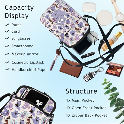 • 【Size】: 21.4cm(8.42inch) *14.5cm(5.7 inch) . The shoulder strap is adjustable, the shortest can be adjusted to 43cm (16.9inch) and the longest can be stretched to 80cm (31.5inch). The crossbody bag comes with a zipper main pocket, a front open pocket and a zipper rear pocket.The spacious space can put your spare purse, lipstick, card , keys, mobile phone and other sundries.
