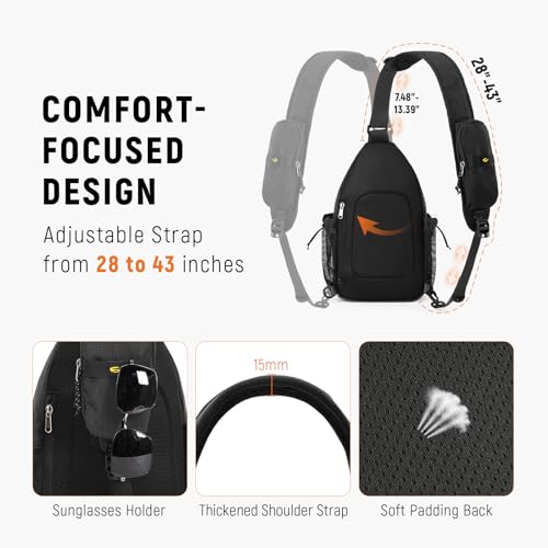 Origin: ImportedClosure type: ZipperWater resistance level: Water Resistant7 Smart Pockets: Our anti-theft crossbody sling bag has 7 pockets that meet your daily needs. The main compartment with 2 sleeves fits an 11-inch tablet. A quick-access front pocket and a shoulder strap pocket keep small essentials. And a kangaroo pouch lets you grab gear without taking the cross body bag offTriple Anti-Theft Protection: Enjoy your journey with built-in RFID blocking lining panel, anti-theft locking zipper and a hidden back pocket, our RFID crossbody bag offers enhanced security for your valuablesUser-Friendly Design: The hybrid shoulder strap features an adjustable woven upper that sits lightly on your skin and a padded lower panel for velvety support, allowing you to switch sides in one move (28–43). An on-strap sunglasses holder and 6.6 phone pocket keep essentials in reach, while soft back padding ensures all-day comfortLarge Side Pockets: Elastic drawcord instantly expands to lock in a 32oz bottle—no wobble, no spill, stay hands-free and move through your day without breaking stridePremium Material: Constructed from high-density, water-resistant, and tear-resistant fabric, our travel crossbody bag men women is built to withstand everyday adventures. Its lightweight build and practical design make it ideal for light-duty use on the go, setting it apart from other sling backpacksUltimate Versatility: Travel effortlessly with our crossbody bag—perfect for day trips, work commutes, weekend getaways, errands, and park strolls. Our crossbody backpack Perfect for everyday use. supreme materials and excellent craftsmanship ensure long-lasting durability.