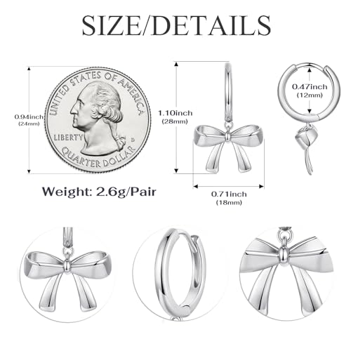Bow Earrings for Women Lightweight Hypoallergenic Silver/Gold Bow Dangle Huggies Earrings for Women Trendy Jewellery Gift 4