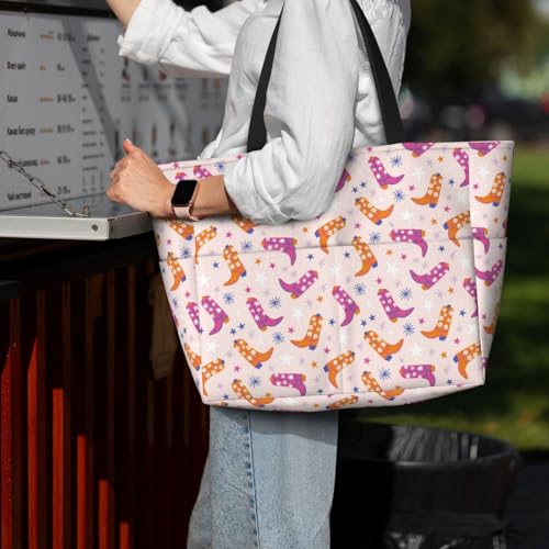 Large Beach Bags Water-resistant Sandproof - Cowgirl Boots Cute Beach Tote Bags for Women with Zipper 1