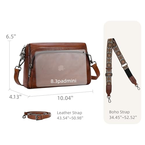 • Size Information- This crossbody purses for women approx 10.04”L x 4.13”W x 6.5”H . Leather strap 43.54"~50.98" in . Detachable wide boho strap about 34.45~52.52" in,Due to handcrafting, a 0.4”tolerance is normal. Adjustable straps allow for custom fitting, ensuring the perfect look for any height.