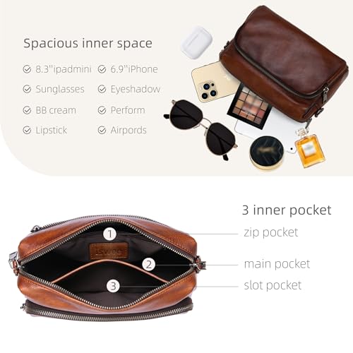 Iswee Leather Crossbody Purses for Women Shoulder Handbags with Pockets Satchel Purse Stylish Cross Body Bag for Travel 3