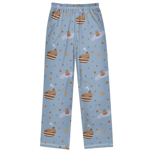 HOT ! Boy's Pants Funny Swimming Capybara Blue Jogger Pants Elastic Waist Long Bottoms Trousers with Pockets 6-14 Years