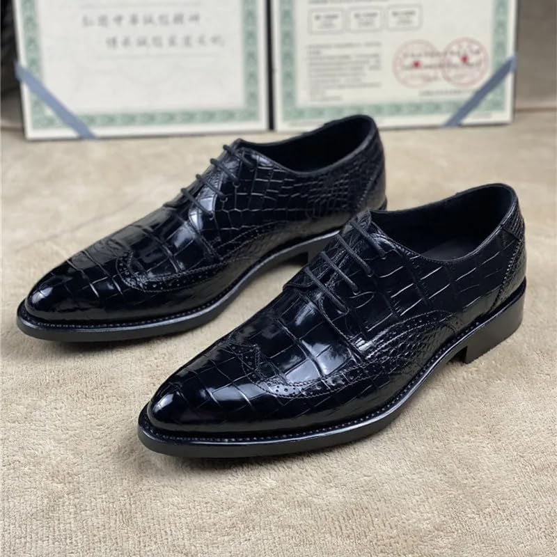 More information about Authentic Crocodile Belly Skin Hand Stitched Businessmen Dress Shoes Genuine Alligator Leather Male Pointed Toe Brock Oxfords