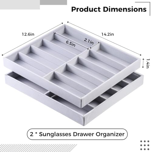 Homaisson 2 PCS Sunglasses Organizer Tray,10-Grid Velvet Sunglasses Organizer Tray, Watches Jewelry Display Box, Glasses Organizer Tray, sunglass organizer drawer, Vanities (14.2 x 12.6 inches) 2