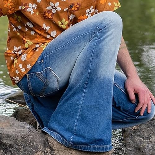 More information about Men's Baggy Casual Bell Bottom Jeans Relaxed Fit Vintage Wide Leg Denim Pants Flared Flares Retro Classic Jeans