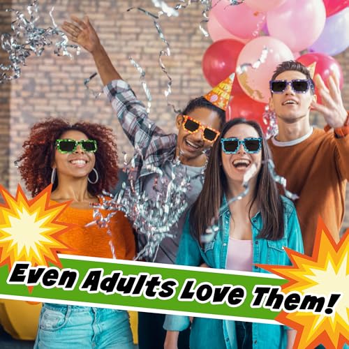 kilofly 3pc 8-Bit Pixel UV Protect Gamer Sunglasses Adult Kids Party Favors 7