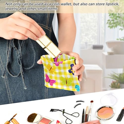 Colorful Butterflies Yellow Coin Purse Leather Pouch Change Purse, Squeeze Coin Pouch for Cards, Keys & Lipsticks, Unisex 5