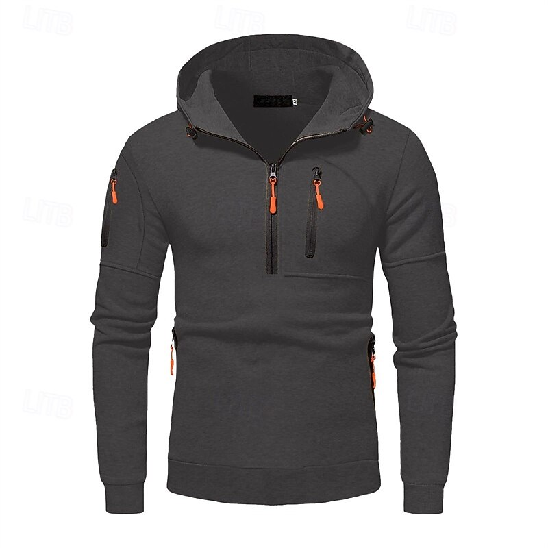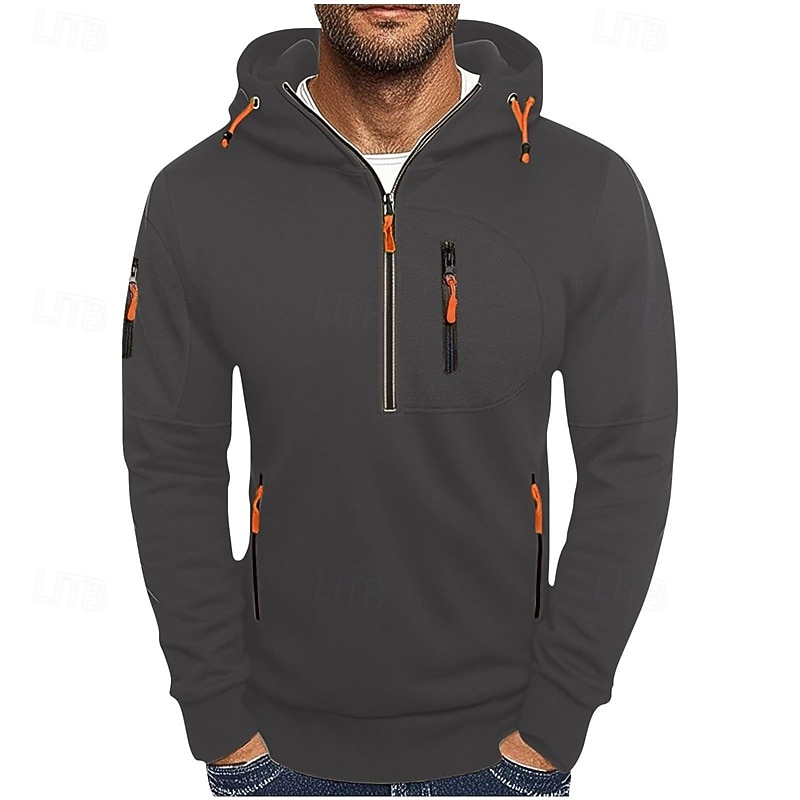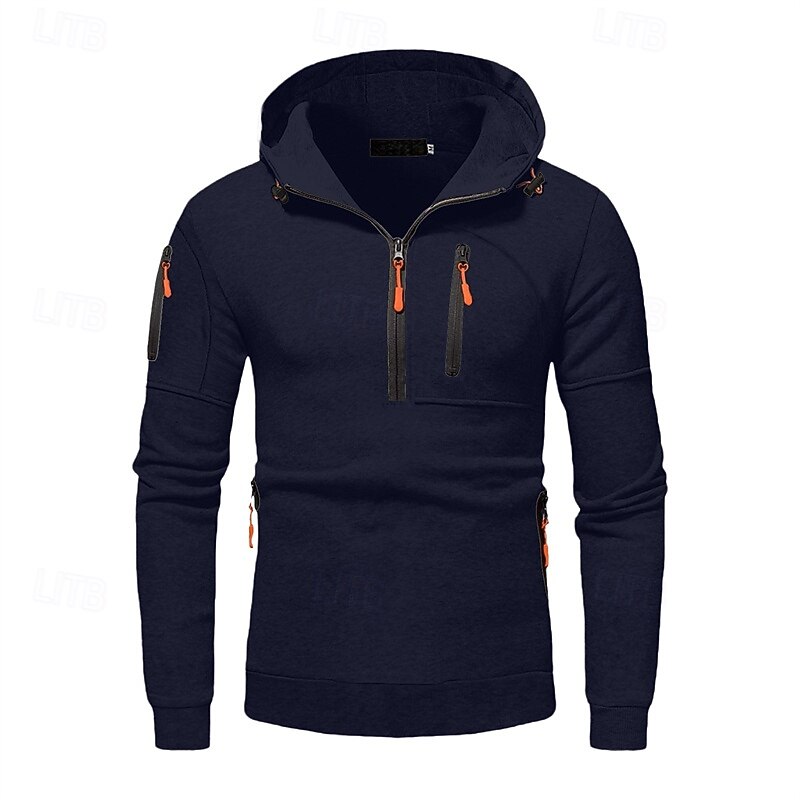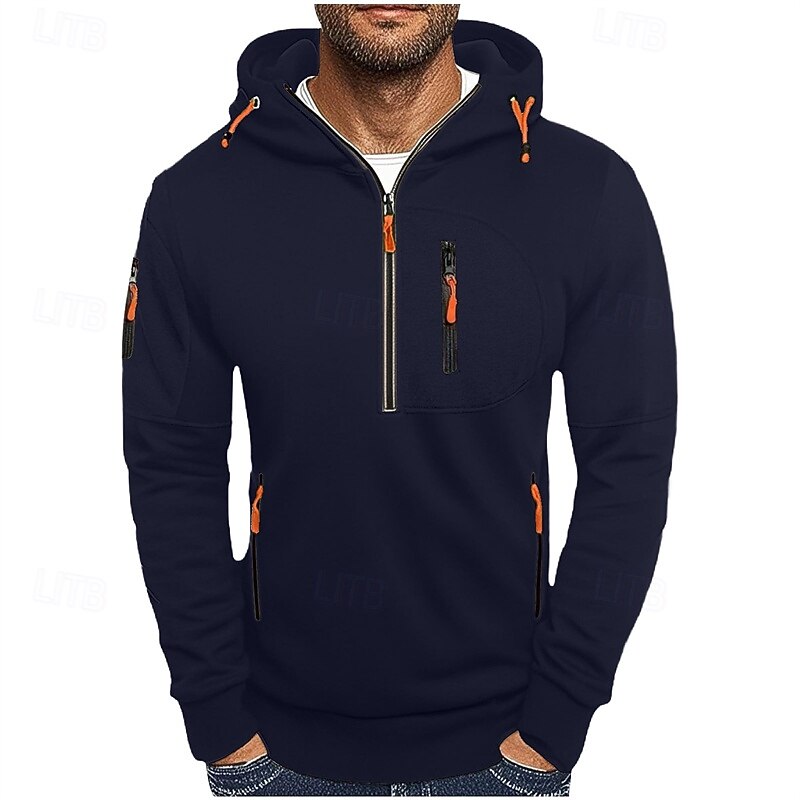 More information about Men's Hoodie Quarter Zip Hoodie Black White Navy Blue Khaki Light Grey Hooded Plain Pocket Quarter Zip Sports & Outdoor Daily Holiday Polyester Streetwear Basic Casual Spring Fall Clothing Apparel
