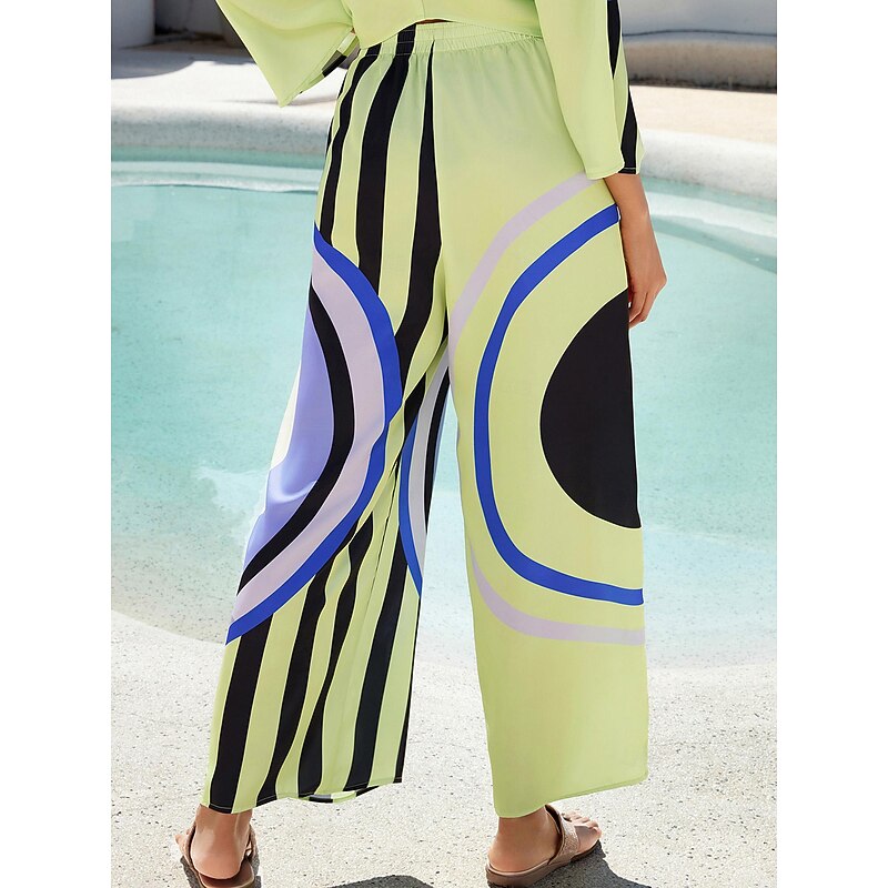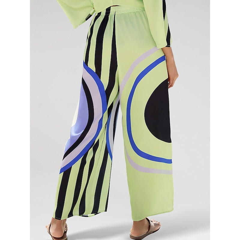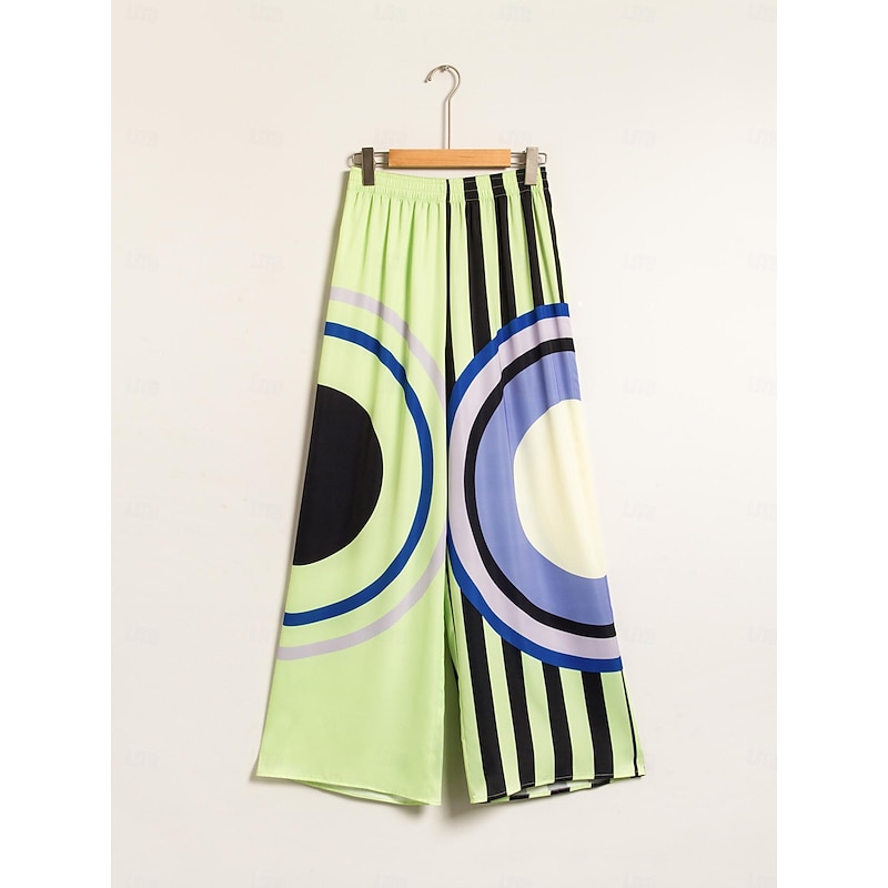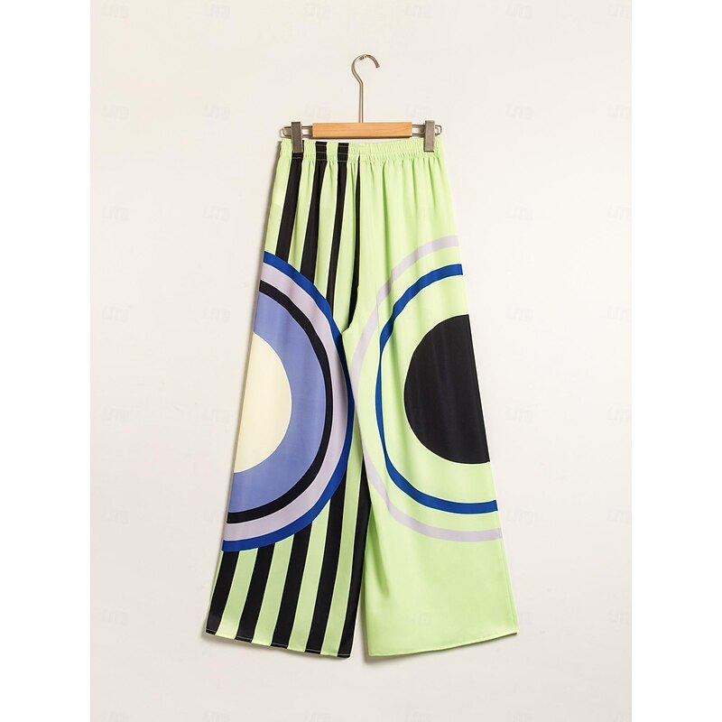 HOT ! Satin Geometric Print Relaxed Elasticity Straight Pants