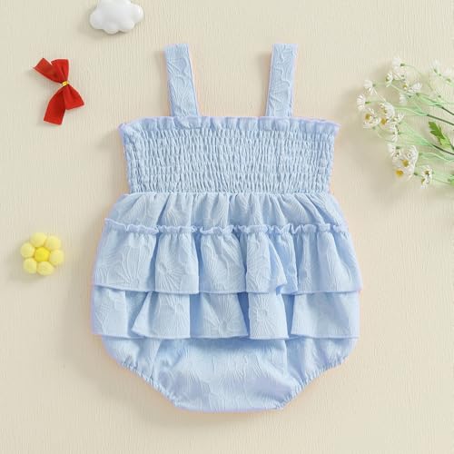 Infant Baby Girl Summer Clothes Bow bodysuit Layer Ruffles Starp Bubble Romper Newborn Sleeveless Outfit 1