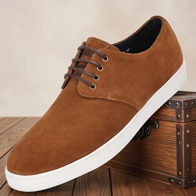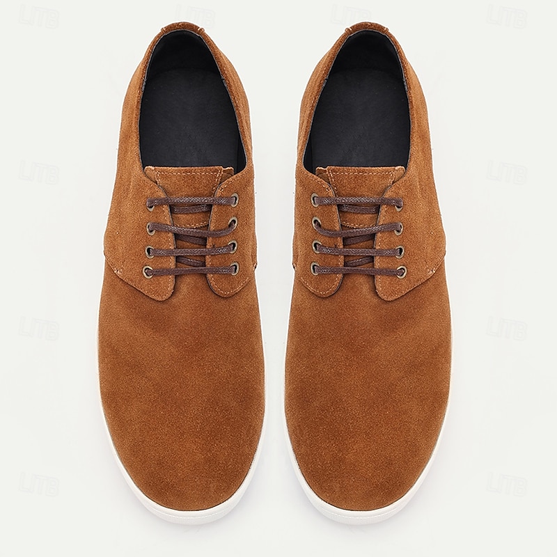 More information about Men's Tan Cowhide Suede Lace-up Sneakers with White Rubber Sole Casual Everyday Shoes for Walking, Travel and Outdoor Activities