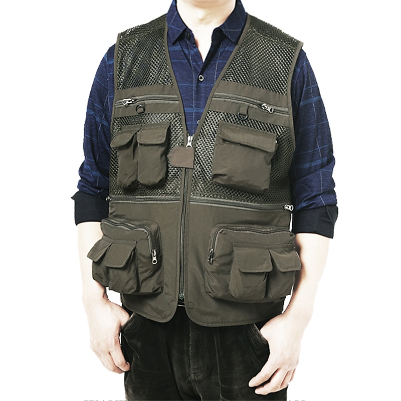 Highlights - Stay organized with our work safari fishing vest featuring varying sized pockets, including secure zippered and velcro fastening pockets. - Made with lightweight and breathable fabric, perfect for spring, summer, and fall. It's anti-pilling and durable, ensuring maximum comfort throughout the day. - Experience mild waterproof and quick dry performance with our mesh style vest. Be ready for drizzle rain and morning dew, and keep dry quickly. - Our multifunctional vest is perfect for fishing, photography, hunting, volunteering, travel, tactical, military, and more. - Sleek and stylish, this vest is sleeveless with a comfortable V-neckline - perfect for men on the go. - Don't compromise on function: our vest is perfect for quick-dry, lightweight, and multi-pocket needs.