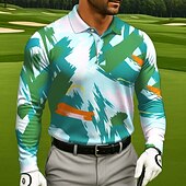 More information about Men's Color Block Golf Polo Long Sleeve Polo Shirts Lapel Casual Athleisure Daily Wear 3D Print Buttons Spring Fall Winter Blue Purple Green