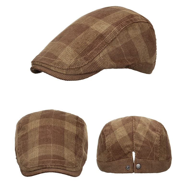 More information about Men's Flat Cap Tweed Cap Black Dark Navy Cotton 1920s Fashion Traditional / Classic Outdoor clothing Casual Daily Plaid / Check