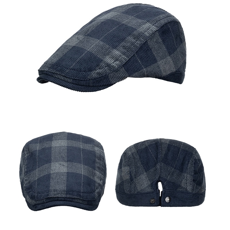 Highlights [Fabric] : Crafted from a blend of soft cotton, this men's flat cap ensures comfort and durability, making it ideal for long-term wear. The high-quality materials provide a luxurious feel and maintain the cap's shape over time. [Fit] : Designed for a snug fit, this cap offers an elegant and sophisticated touch. Its carefully constructed structure delivers a comfortable wearing experience, suitable for various head sizes. [Design Highlights] : Featuring a classic plaid pattern in a dark navy hue, this flat cap combines timeless style with contemporary appeal. The attention to detail in its craftsmanship, including finely stitched seams, adds to its aesthetic allure. The lightweight design ensures it is perfect for transitional seasons like spring and fall. [Occasions] : Versatile and stylish, this cap is perfect for outdoor clothing, casual daily wear, and semi-formal events. Its traditional yet classic design makes it suitable for 1920s fashion enthusiasts and modern dressers alike, offering a classy addition to any wardrobe. [Size] : Available in a one-size option, this cap is designed to fit a variety of head sizes comfortably, making it a practical choice for most wearers.