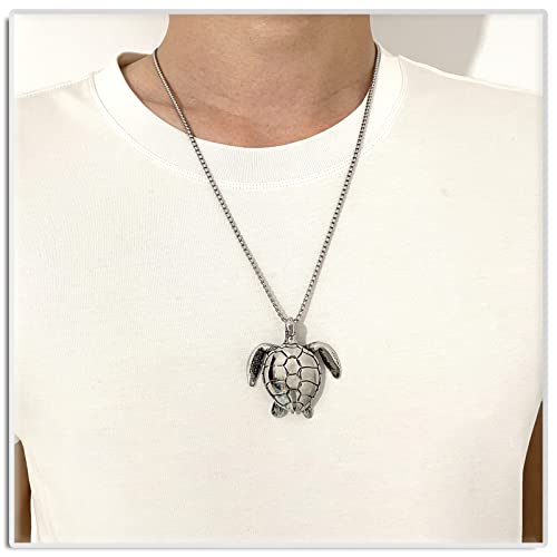 Xusamss Punk Rock Stainless Steel Turtle Tag Pendant Chain Necklace,24inches Box Chain 3
