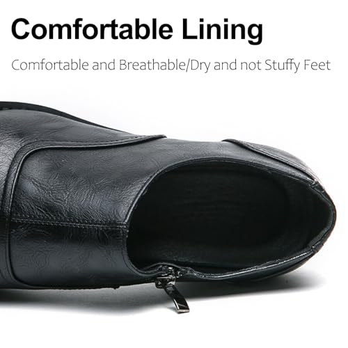 Men's Leather Low Heel Slip On Loafers with Side Zipper Comfort Non-Slip Block Heel Casual Penny Shoes Business Work Office Dress Shoes 4