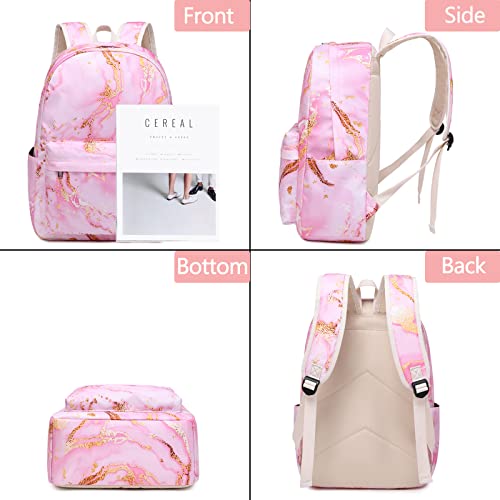Sunborls Backpack for Teen Girls Lightweight High-Capacity Student Bookbag Women Backpack With Lunch Bag Pencil Bags Student Bookbags 3pcs(Marble pink) 3