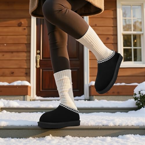 • HIGH-QUALITY SUEDE: Winter walking slippers durable suede upper with trim. House slippers also protect your feet from splashes. Mini boots are the perfect gift for Christmas and New Year's.