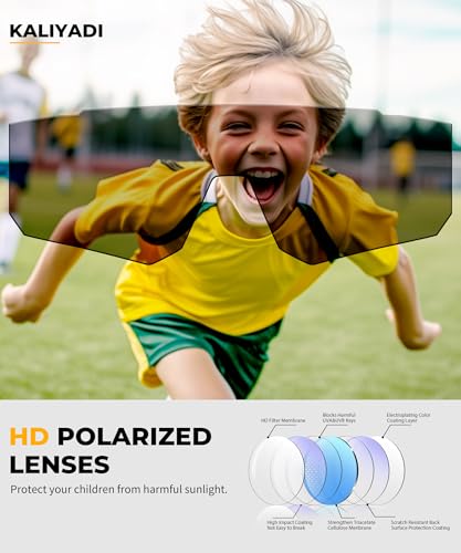 • Protection and Clarity: KALIYADI kids sunglasses men are designed with the maximum attention to protect your eyes during outdoor activities. The polarized lenses effectively reduce glare, enhancing clarity and providing optimal sight. Whether you're cycling, running, or playing sports, these polarized kids sunglasses boys ensure clear and unobstructed sight, allowing you to fully focus on your performance