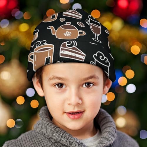 Cartoon Coffee Pattern Kids Beanie Hat for for Girls Boys Children Cap Winter Knitted Chemo Cancer Headwear Accessories Gifts Decoration 1