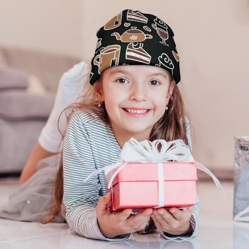 Cartoon Coffee Pattern Kids Beanie Hat for for Girls Boys Children Cap Winter Knitted Chemo Cancer Headwear Accessories Gifts Decoration 2