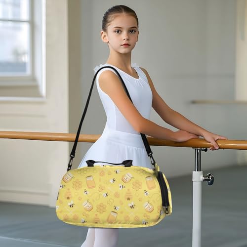 Yellow Bee Honey Kids Duffle Bag cat Travel Bag for Toddler Overnight Duffel Ballet Dance Sport Carry On Weekender Bag with Shoes Compartment for Boys & Girls 1