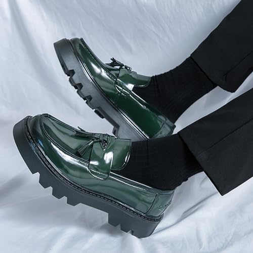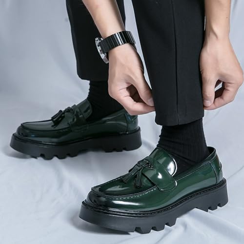 Men's Tassel Lug Sole Slip-on Platform Loafers,Fashion Patent Leather Round Toe Low Top Non-Slip Business Dress Shoes for Party Dating Prom 7