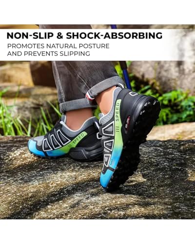 • Slip-Resistant Traction: The hiking shoes men boast wide-toe durable rubber outsoles that grip wet rocks, muddy trails, and slippery surfaces to prevent falls during outdoor adventures