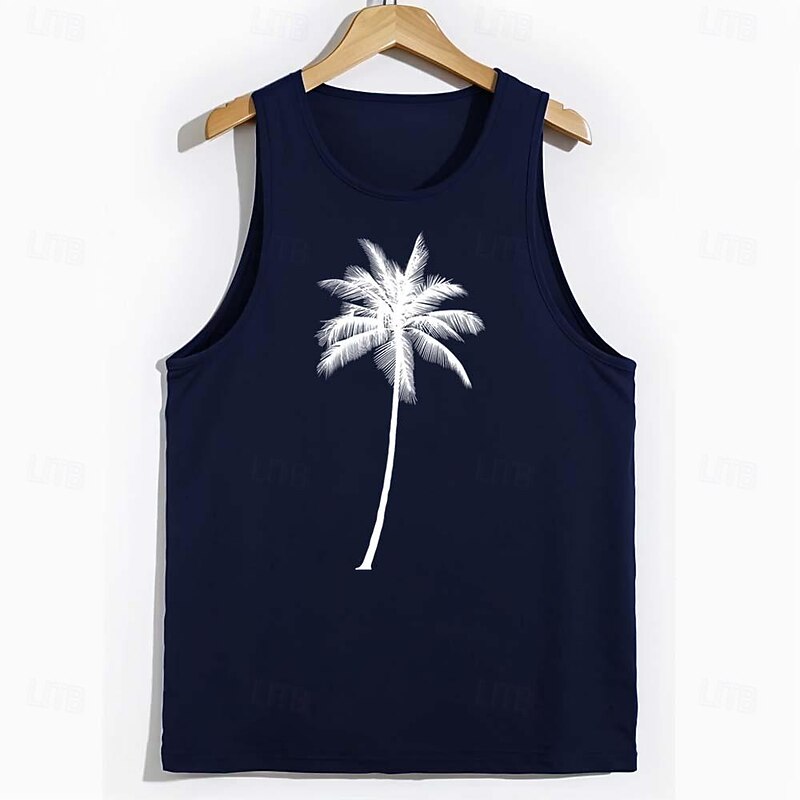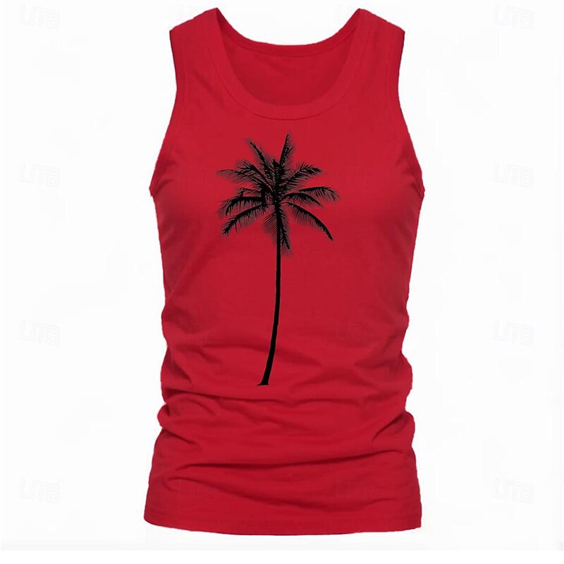 More information about Men's Tank Top Vest Top Undershirt Short Sleeve Crew Neck Spring & Summer Graphic Coconut Tree Fashion Hawaiian Casual Print Street Daily Beach White Top Tee for Men