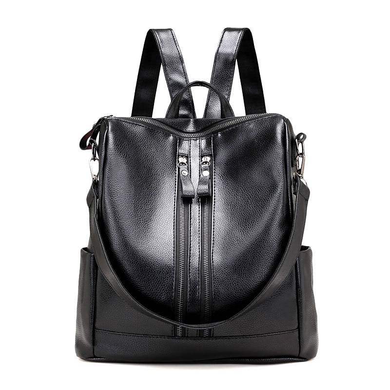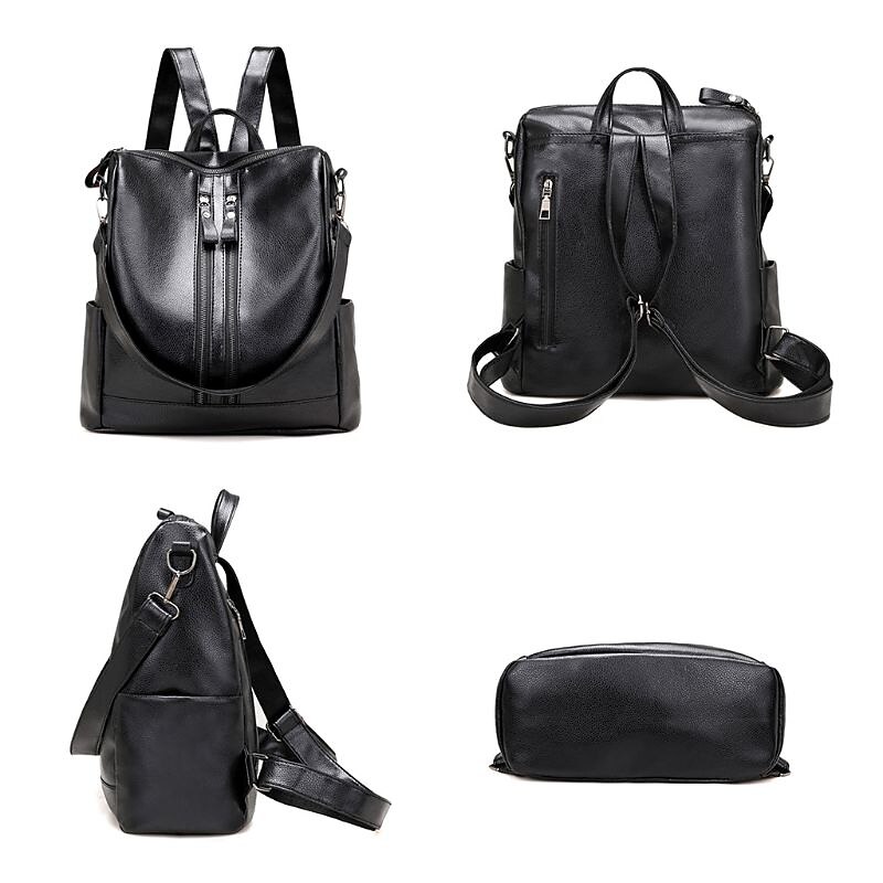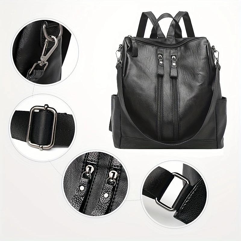 HOT ! Women's Black Faux Leather Backpack Purse with Convertible Shoulder Strap – Stylish Anti-Theft Bag for Work, Travel, or Daily Use