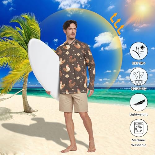 Cartoon Funny Yuanbao Chicken Brown Men's Sun Protection Hoodies Long Sleeve Sailing Shirts Fishing Shirt UPF 50+ S 4