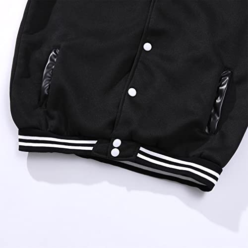 Mowbeat Women Leather Baseball Jacket Unisex Varsity Uniform Long Sleeve Adult Casual Cardigan Men's Track Jacket