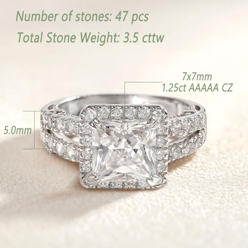 Wuziwen 925 Sterling Silver Halo Princess Cut Engagement Ring for Women AAAAA CZ Wedding Promise Rings for Her 3
