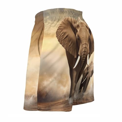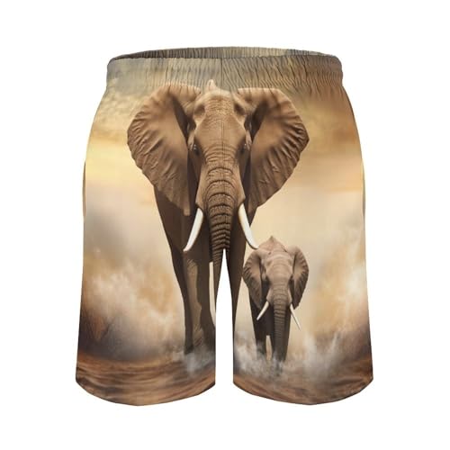 HOT ! Mens Shorts Elephant and Baby Elephant Men Swim Trunks Quick-Dry Beach Shorts with Drawstring Pocket Bathing Suit