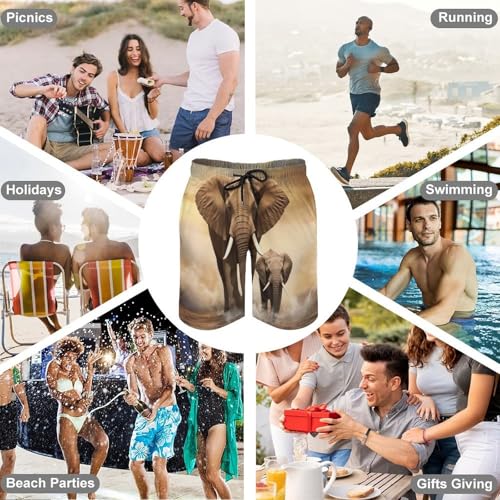 Mens Shorts Elephant and Baby Elephant Men Swim Trunks Quick-Dry Beach Shorts with Drawstring Pocket Bathing Suit 4