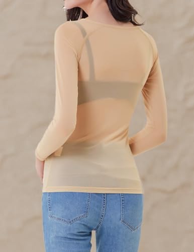 GRACE KARIN Women's Long Sleeve See Through Mesh Sheer Top Blouse Shirt 3