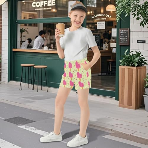 Girls Lounge Shorts Pink Popsicles Sprinkles Yellow Cute Casual Summer Activewear Soft Pajama Sleep Shorts, X-Small 6