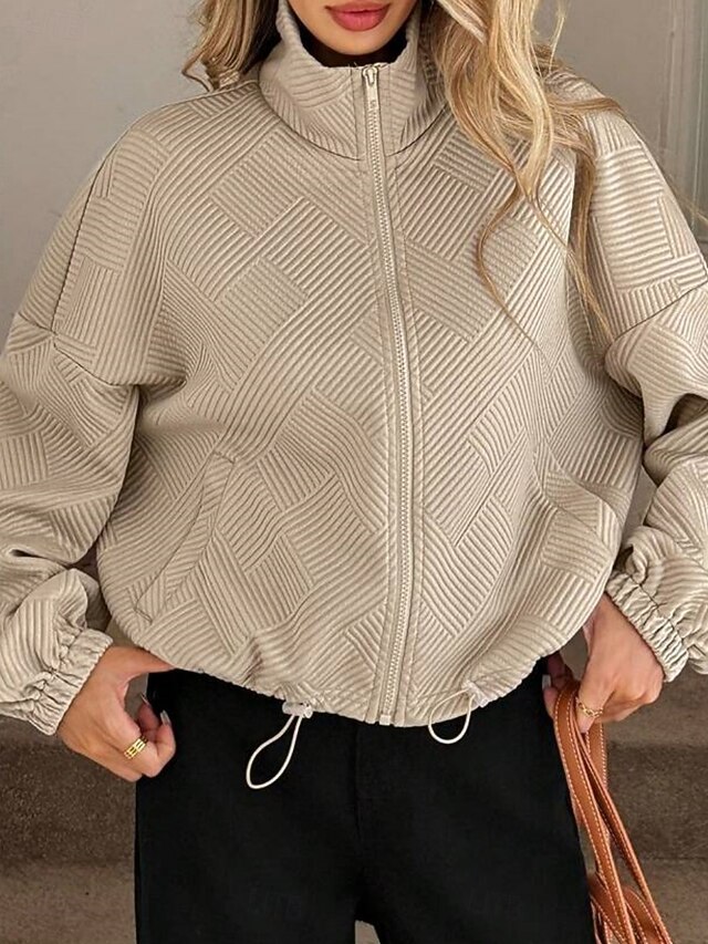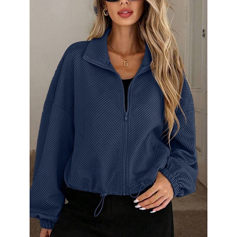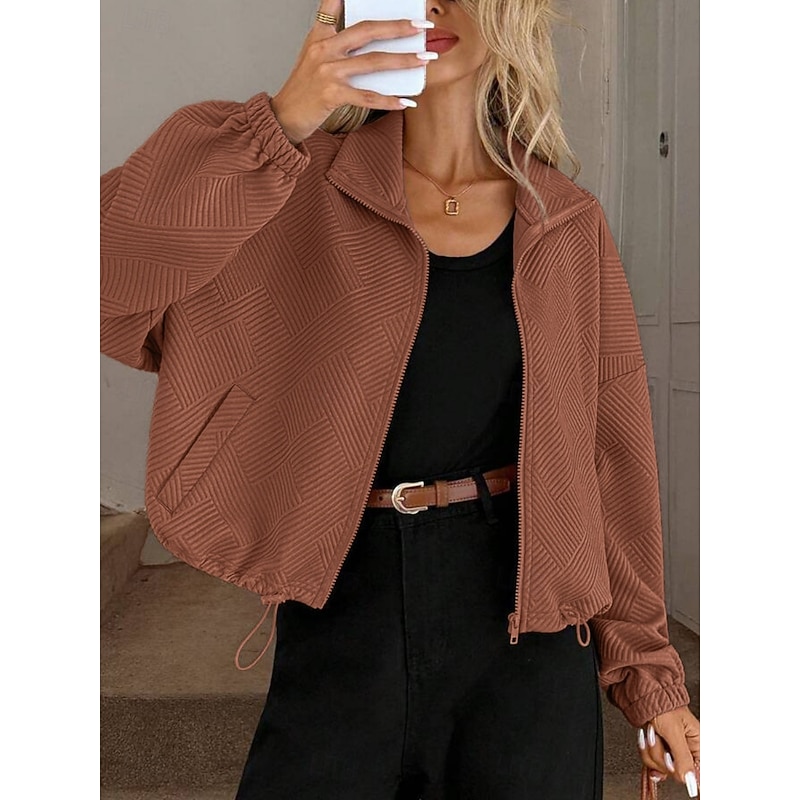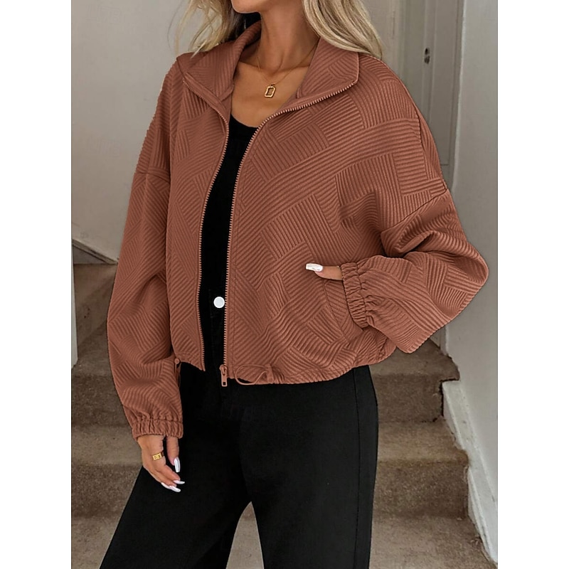 More information about Women's Casual Jacket Comfortable Breathable Zipper Pocket Casual Plain Vacation Street Casual Daily Wear Zipper Short Turndown Regular Fit Long Sleeve Outerwear Black Navy Blue Brown Spring Fall