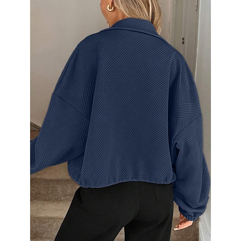 Women's Casual Jacket Comfortable Breathable Zipper Pocket Casual Plain Vacation Street Casual Daily Wear Zipper Short Turndown Regular Fit Long Sleeve Outerwear Black Navy Blue Brown Spring Fall 1