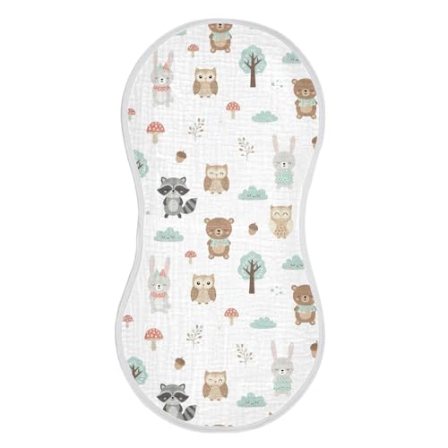 J JOYSAY Raccoon Owl Mushrrom White Baby Burp Cloths for Boys Girls Large 22''x11'' Cotton 4 Layer Burp Rags for Baby Spit Up one sizex4 5