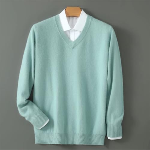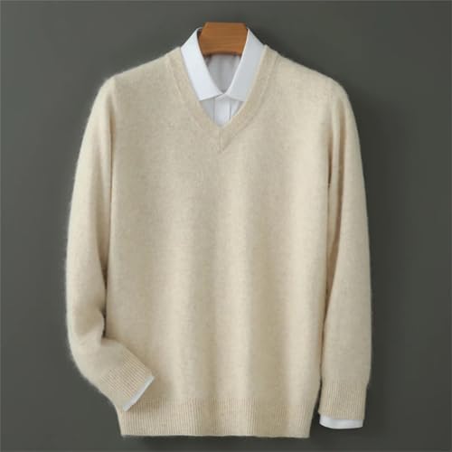 Men's 100 Percent Mink Cashmere Sweater V-Neck Pullover Sweater Knitted Sweater Winter Long Sleeved Loose Tops 5