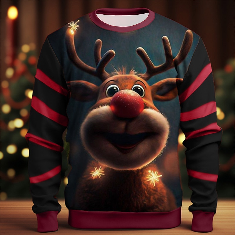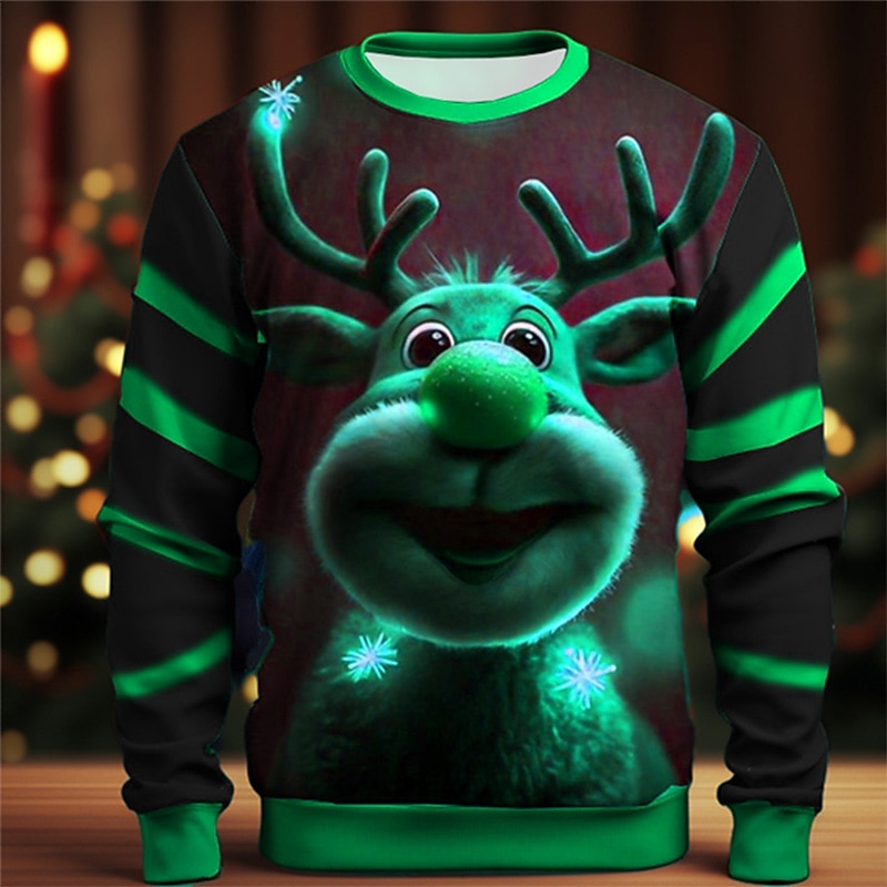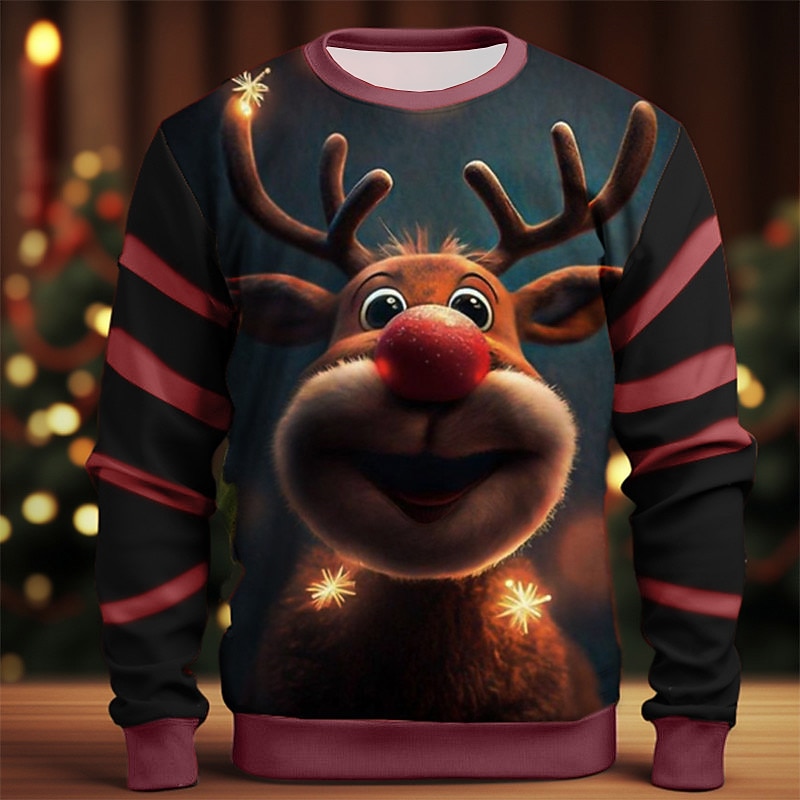 More information about Men's Graphic Elk Moose Christmas Sweatshirts Sweatshirt Golf Pullover Sweatshirt Long Sleeve Sweatshirt Crew Neck Fashion Daily Casual 3D Print Vacation Holiday Going out Print Spring & Fall
