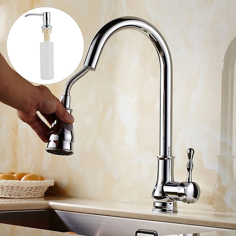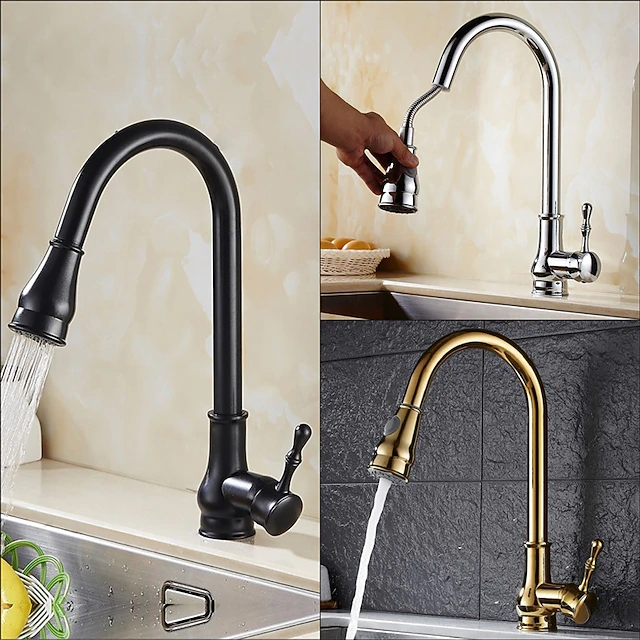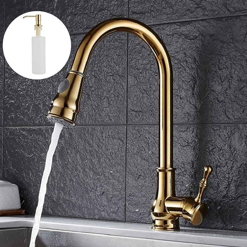 Kitchen Faucet with Sprayer,Brass 2-Function Outlet Single Handle One Hole Electroplated Pull-out Kitchen Taps 1